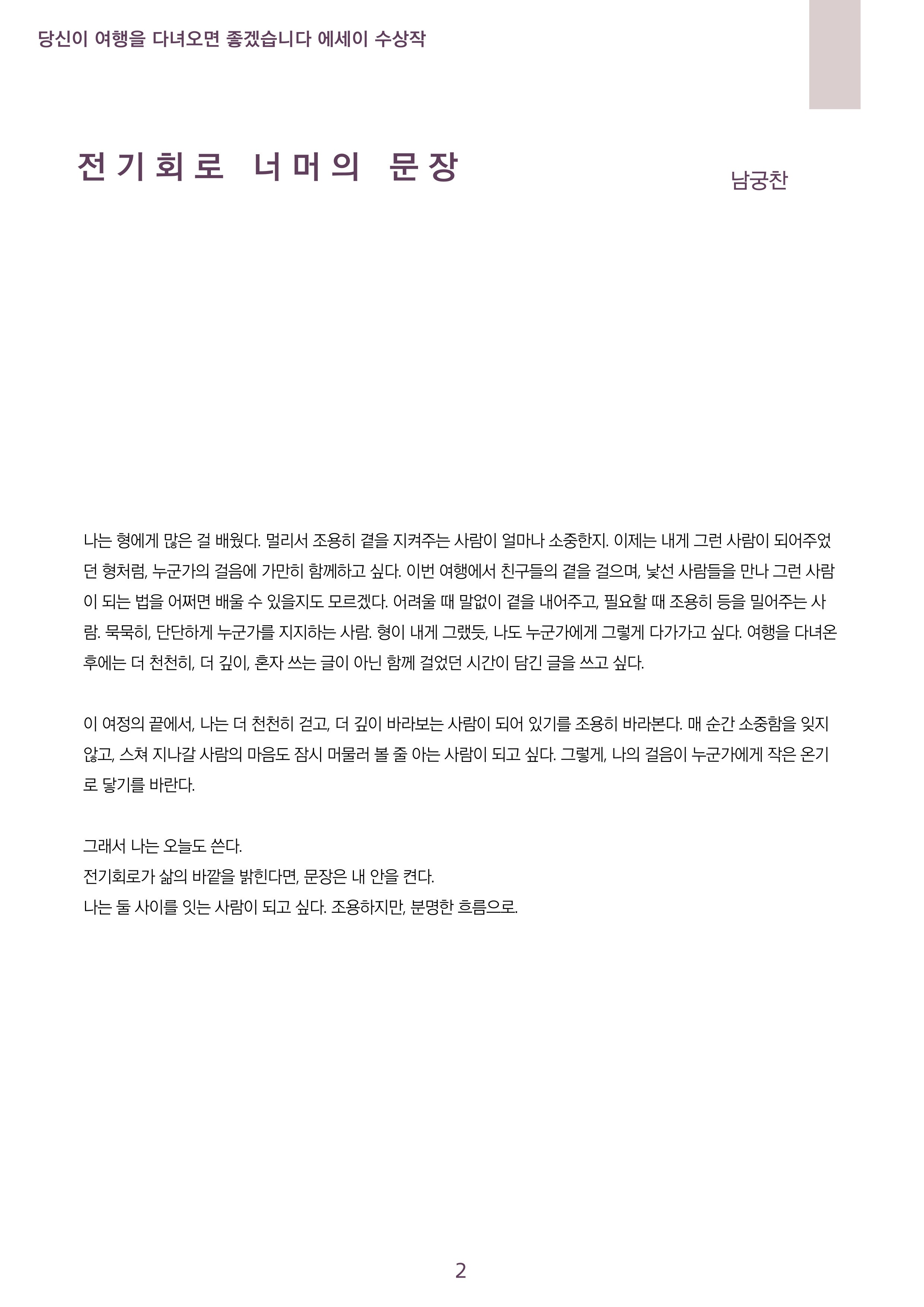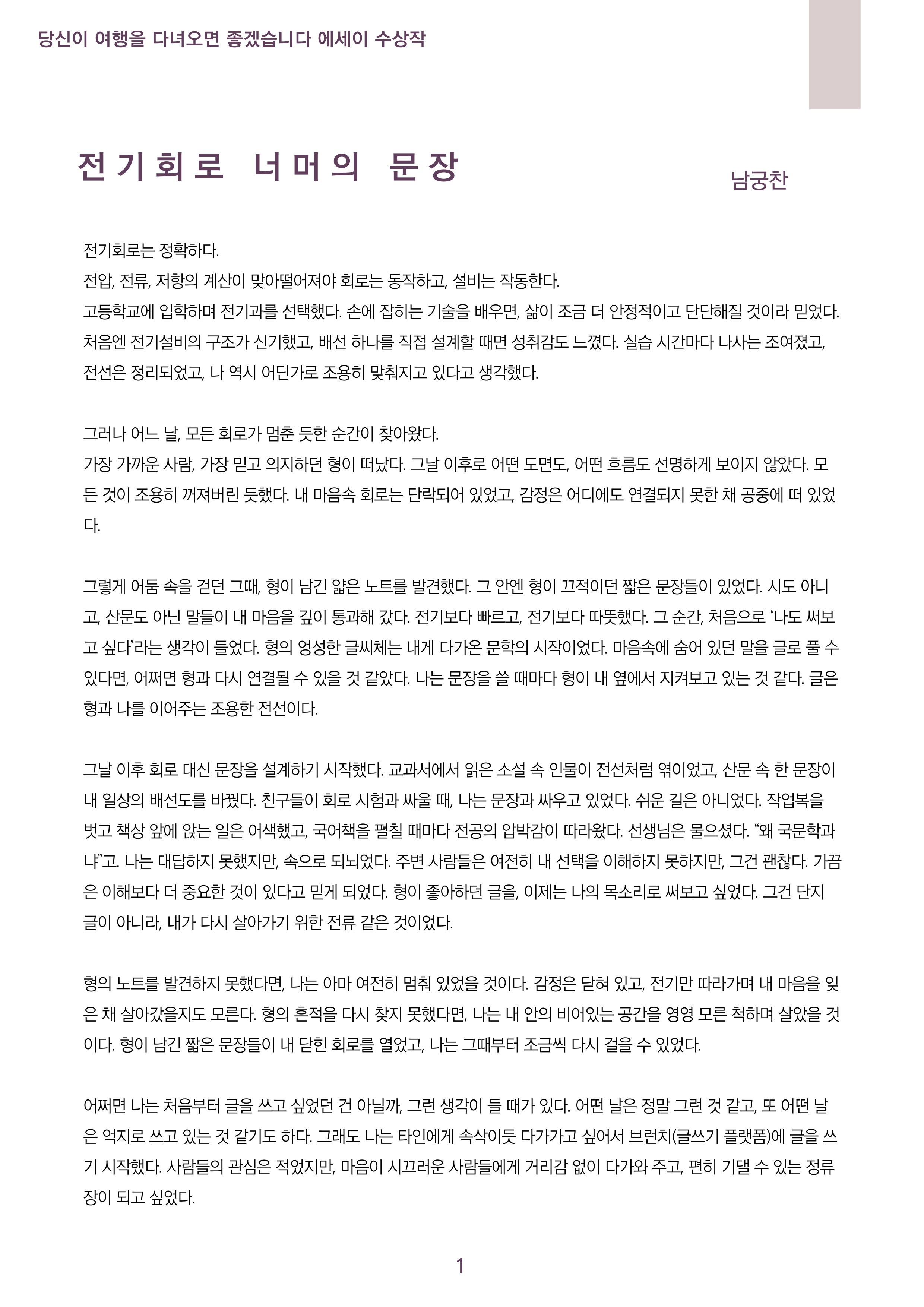 2025 당신이 여행을 다녀오면 좋겠습니다 수상작 「전기회로 너머의 문장」