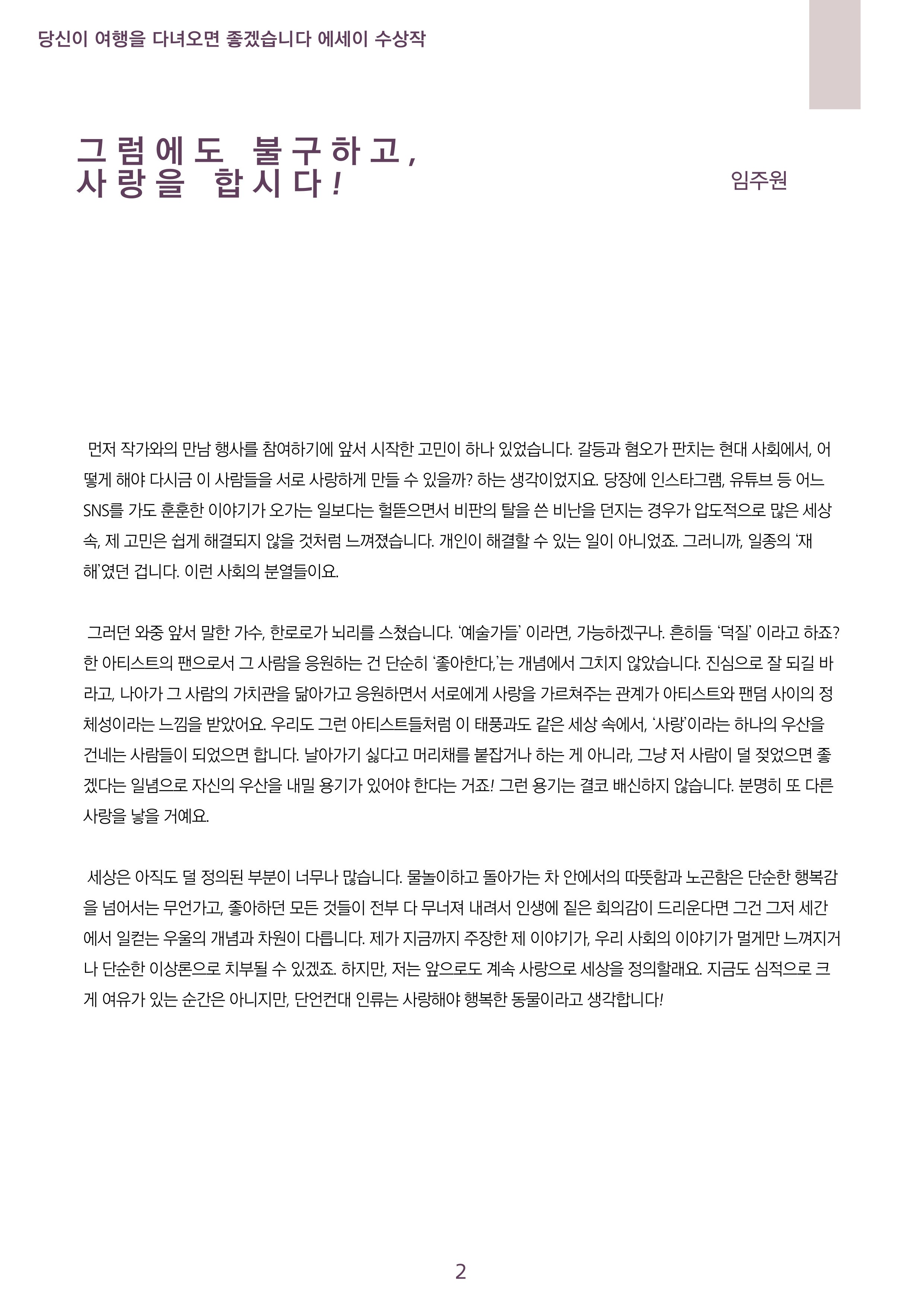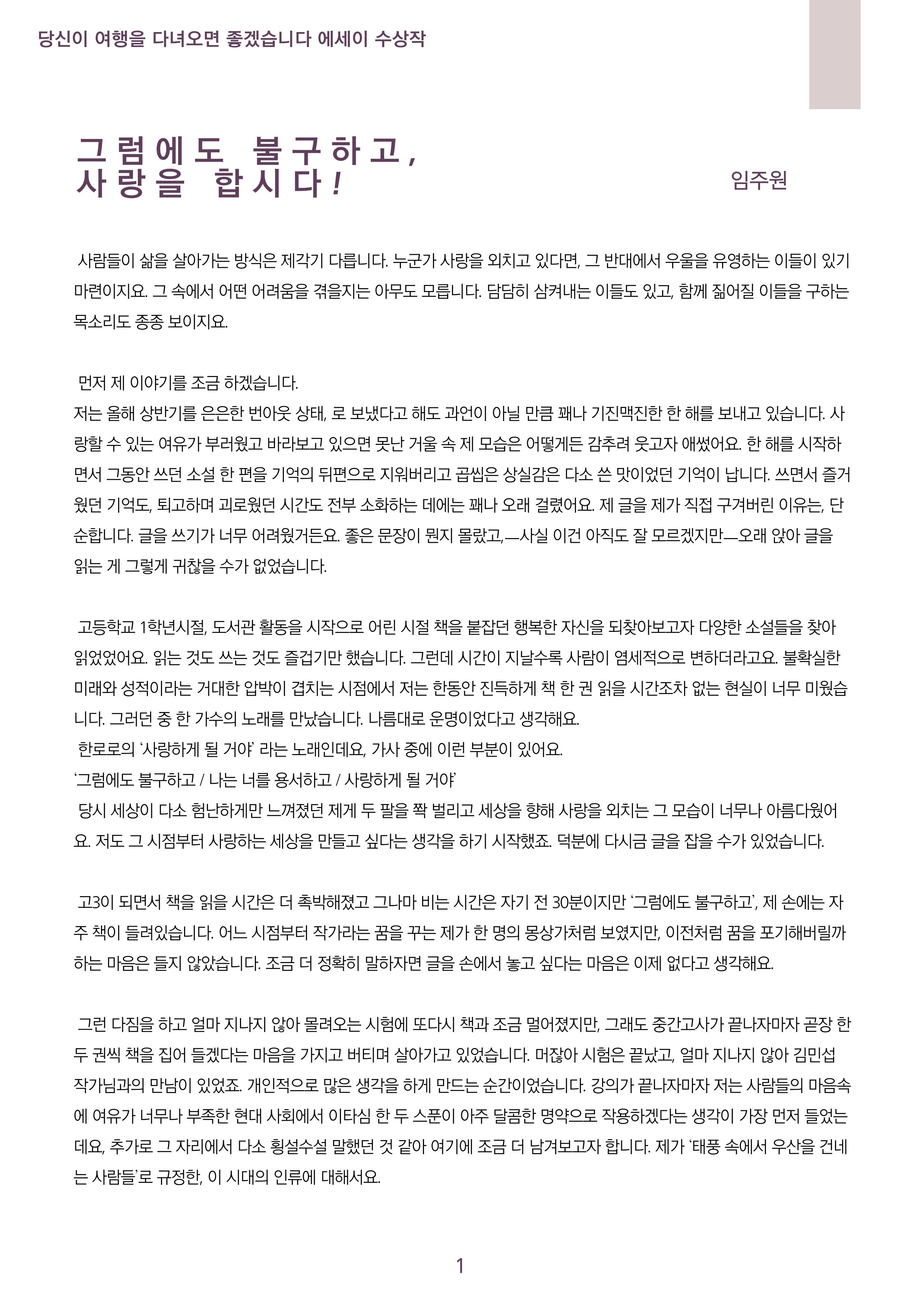 2025 당신이 여행을 다녀오면 좋겠습니다 수상작 「그럼에도 불구하고, 사랑을 합시다!」