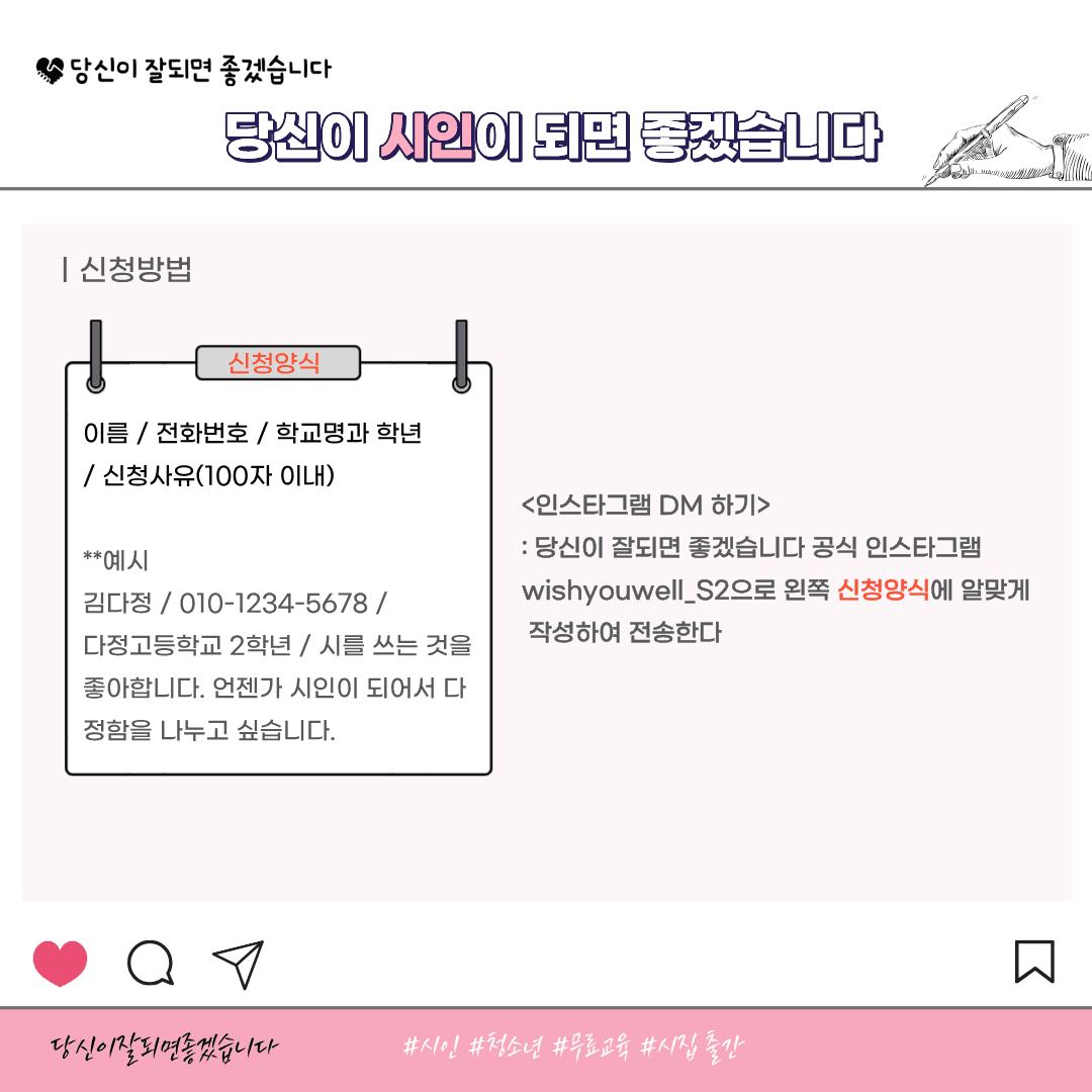 💌 신청방법: 당신이잘되면좋겠습니다 인스타그램(wishyouwell_s2)으로 DM으로 신청양식 작성 후 DM 발송