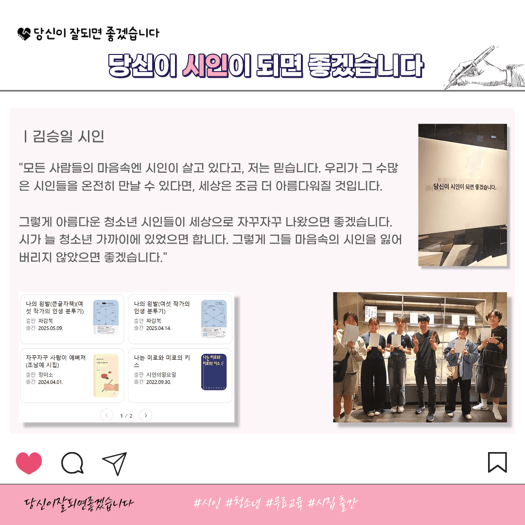 #당신이잘되면좋겠습니다 #당신이시인이되면좋겠습니다 #청소년직업체험 #시인 #시 #시쓰기 #작가 #김승일시인 #청소년 #청소년문화사업 #무료교육 #시집