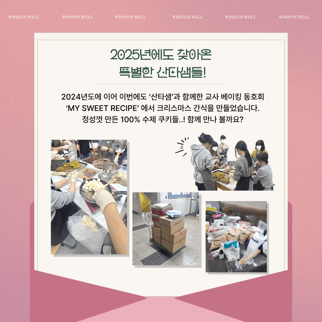2025년 따뜻한 연말, 아이들에게 다녀온 특별한 산타들의 소식을 전해드립니다. 작년부터 함께 했던 전국 교사 베이킹 동아리 '마이 스윗 레시피'와 보육원 아이들에게 깜짝 크리스마스 추억을 선물하였습니다. 🎅