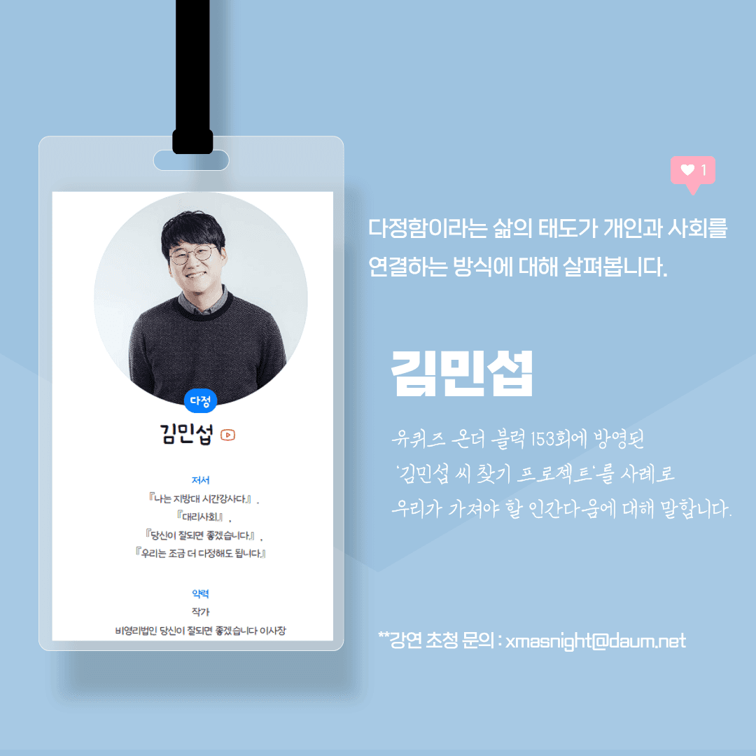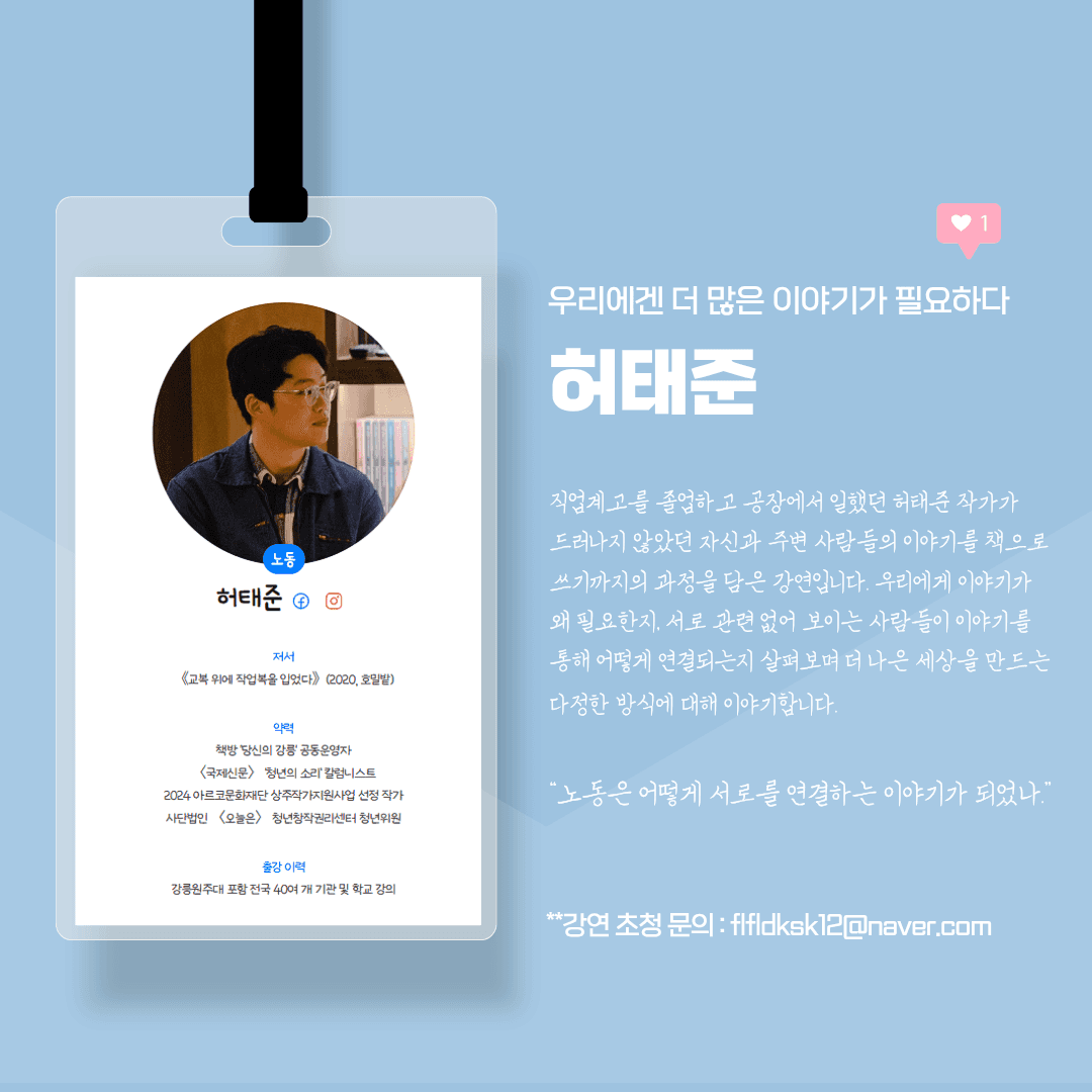 카드뉴스 내 기재된 이메일로 각 강사님께 개별 연락 부탁 드립니다.