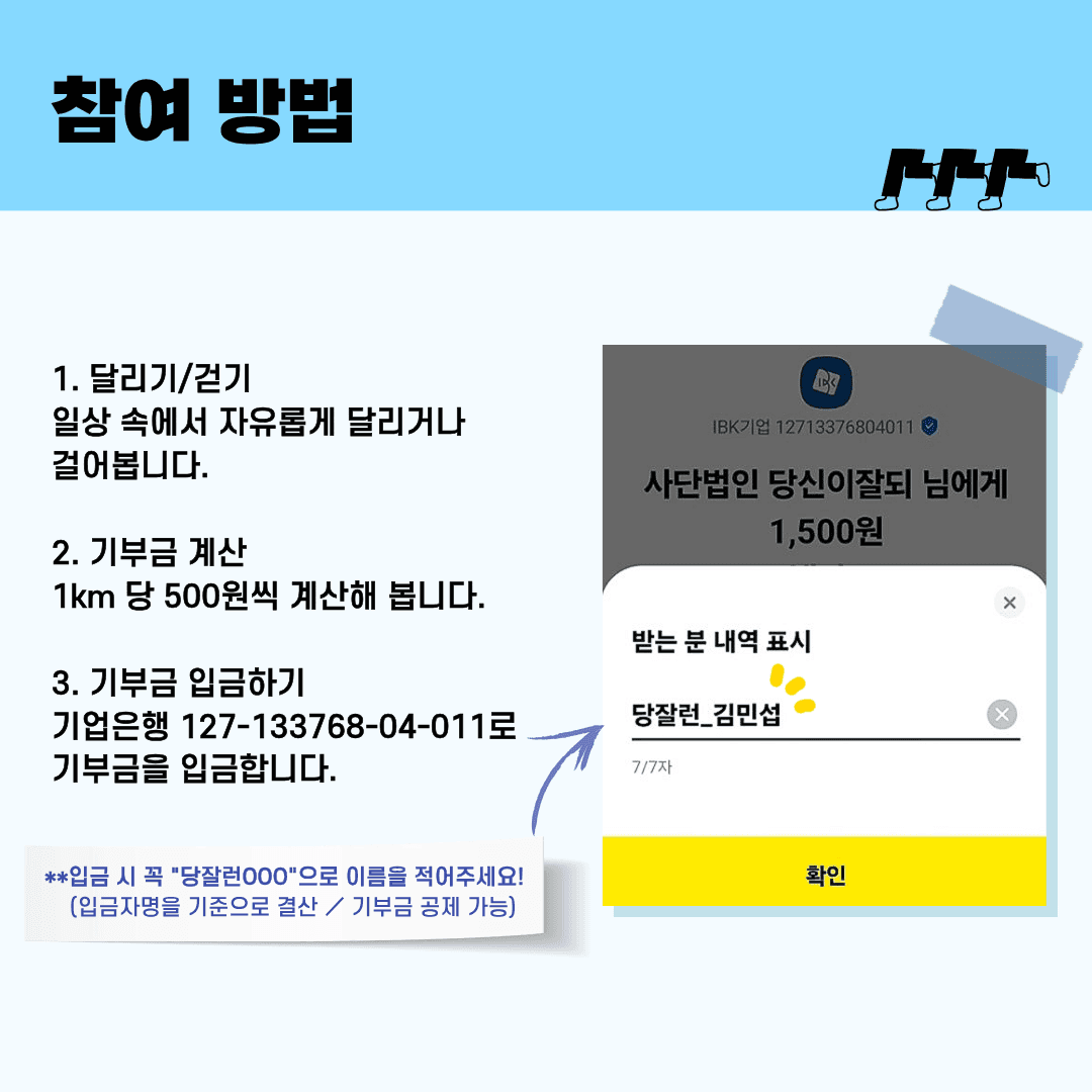 입금 시 꼭! "당잘런OOO"으로 이름 적어주세요(입금자명을 기준으로 결산 / 기부금 공제 가능)
