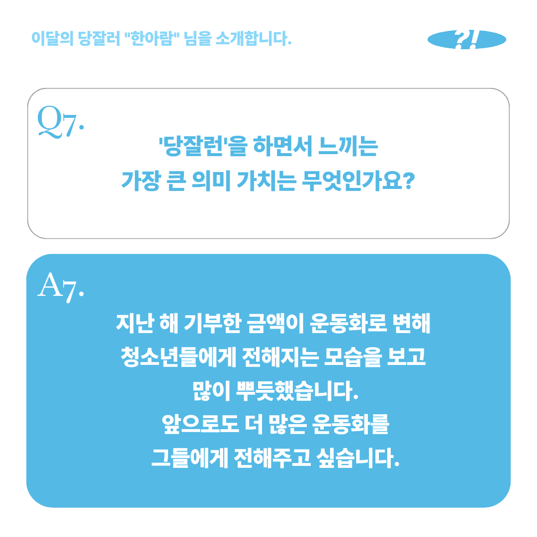 지금, 함께 뛰러 나가시죠.” 이달의 당잘러 한아람 中